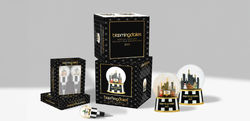 Building on the success of the 2022 collection, Bloomingdale’s sought to expand their snow globe line with an additional exclusive item. A beautifully packaged set of two wine stoppers, each topped with a miniature snow globe. The packaging features a big brown bag detailed pattern on a black background and gold accents to celebrate it's anniversary without being the main attraction.